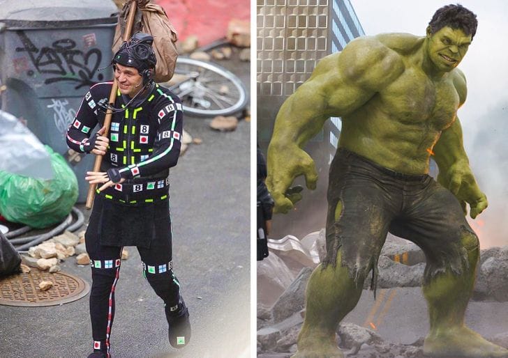 Mark Ruffalo who played the role of Hulk in marvel movies, looked something like this on the sets, it's quite difficult to imagine him as Hulk after you see this images. But still he did a really good job when it came to acting as Hulk.