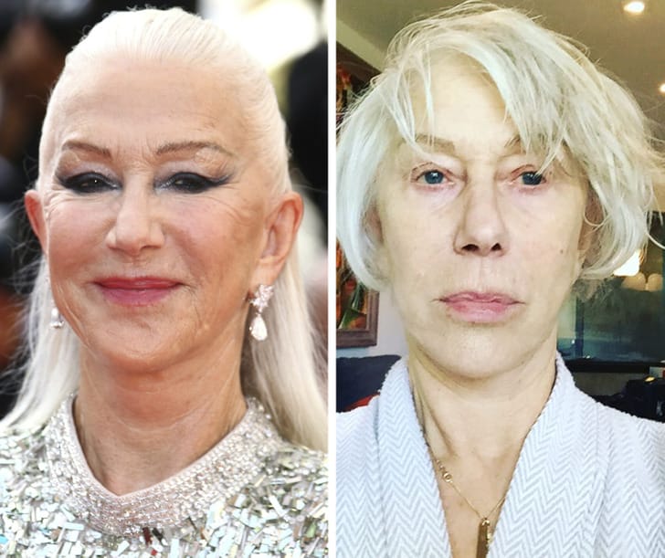 Can we be like Dame Helen Mirren when we grow up? The 72-year-old actress appears bold in her job and personal style (remember when she coloured her hair pink?). This also applies to publishing makeup-free selfies. She is simply so good that she needs no make up to make herself look good!
