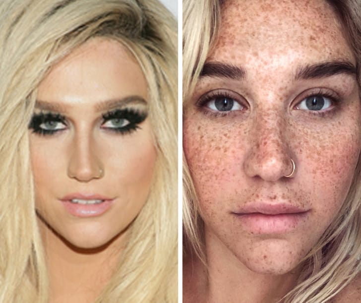 Kesha is the type of celebrity you'd expect to see wearing statement makeup. The High Road singer constantly experiments with her eye makeup, donning a variety of bright colors and glitter. However, as much as Kesha enjoys a playful makeup look, she isn't afraid to show off a more pared-down version of herself on social media.