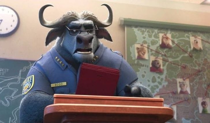 Chief Bogo wearing glasses in Zootopia.