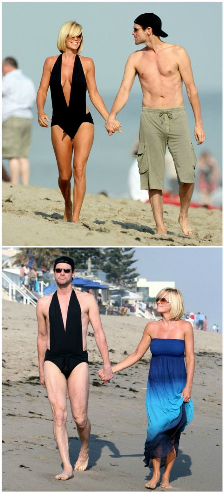 Once Jim carey was spotted with her partner at a beach, and the next time when he went to the beach he exactly knew what he had to do. He wore his partners dress and went in front of the paparazzi to make fun of them