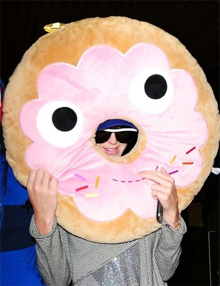 Apart from her singing carrer, katy perry is a real fun person when it comes to meeting fans or coming across paparazzi, look at this when once when she came wearing a donut shaped stuffed soft toy in front of paparazzi.