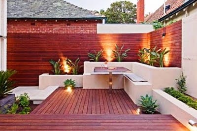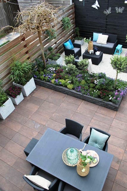 Well this garden look gives a perfect simple look to your garden patio design with dining set and a perfect lawn, showcasing the basic look of this garden ideas, with an innovative touch of each designs. Enhancing the black look to your garden patio ideas.