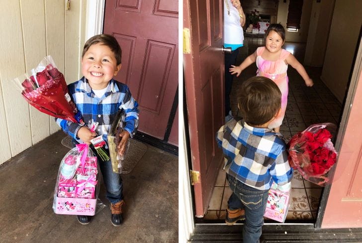 A boy surprising his girlfriend on Valentine’s Day