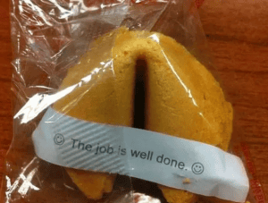 There are two kinds of people in the world - One who believe fortune cookies and the second, who absolutely don't and downright despise it. Now, turns out, this incident made a believer lose his complete trust in this fallacy! What's the point of a fortune cookie if it reads - "The job is well done" ... Umm, please tell us what will happen? In the future? Don't state a random statement please!