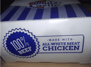 This dude forgot what he was packing or selling rather. So to keep it simple and save his case, he basically printed boxes with every random product he had - chicken, beef, white meat, you name it, this box got it. It also has a lot of confusion, but that's a whole different story!