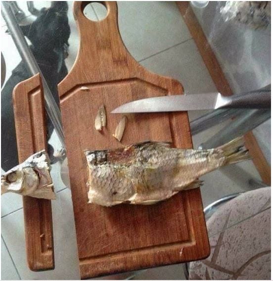 He was just practicing his chopping skills and this thing happened or maybe he really was trying to practice his kung fu style.
