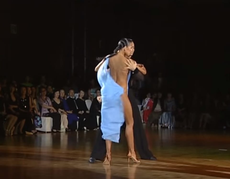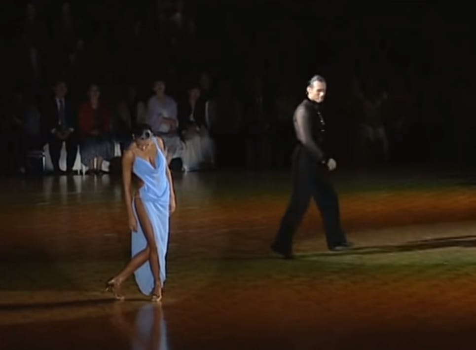 The most popular kind of rumba dance is called Guaguanco, or “the dance of love” and this couple is performing that.
