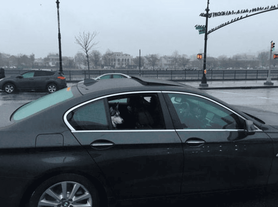Is the dog having an existential crisis while his human drives him through the city? Or is he just sitting there enjoying the city breeze like a boss?