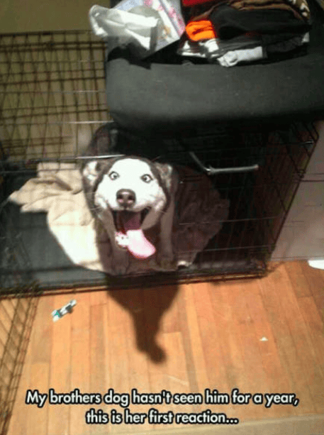 This dog is so cute. I want someone to be this happy when I visit them after a long. I want a pet right now. Look at the excitement on the dogs face when he finds out.