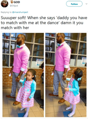 He is an example of a perfect dad! When he has to show up in a father-daughter dance, he shows up in style, matching with his little princess! I wish every dad follows him as a role model! Look at his happy princess...