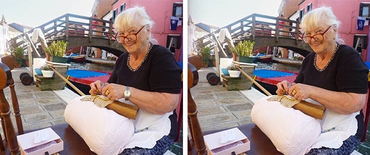 This old woman is smiling at the camera and it seems like this is indeed a cute, candid picture. However, even in this, you will see some major differences.