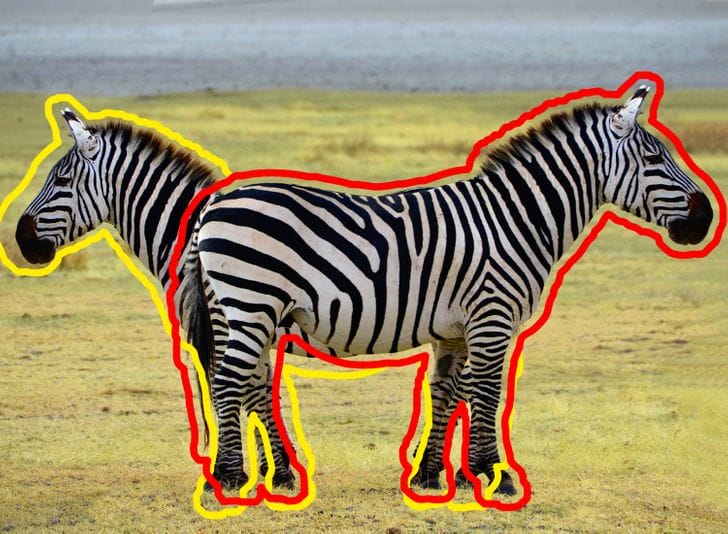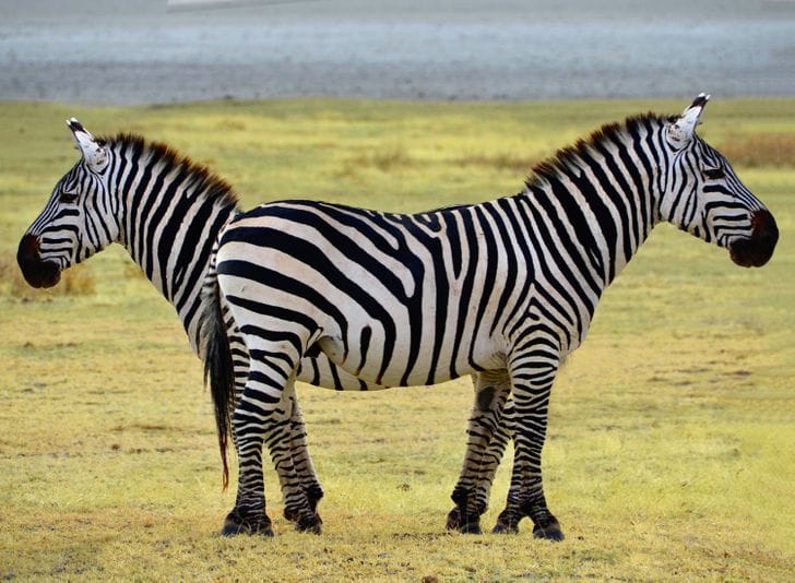 Well, these 2 zebras may be standing beside each other, looking all content in life, but where are their legs? Whose legs are which ones? Can you tell?
