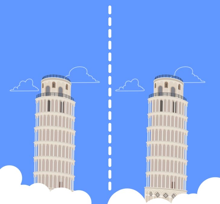 Which of these two towers are leaning more you think? Well, if one good look should help you make a decision